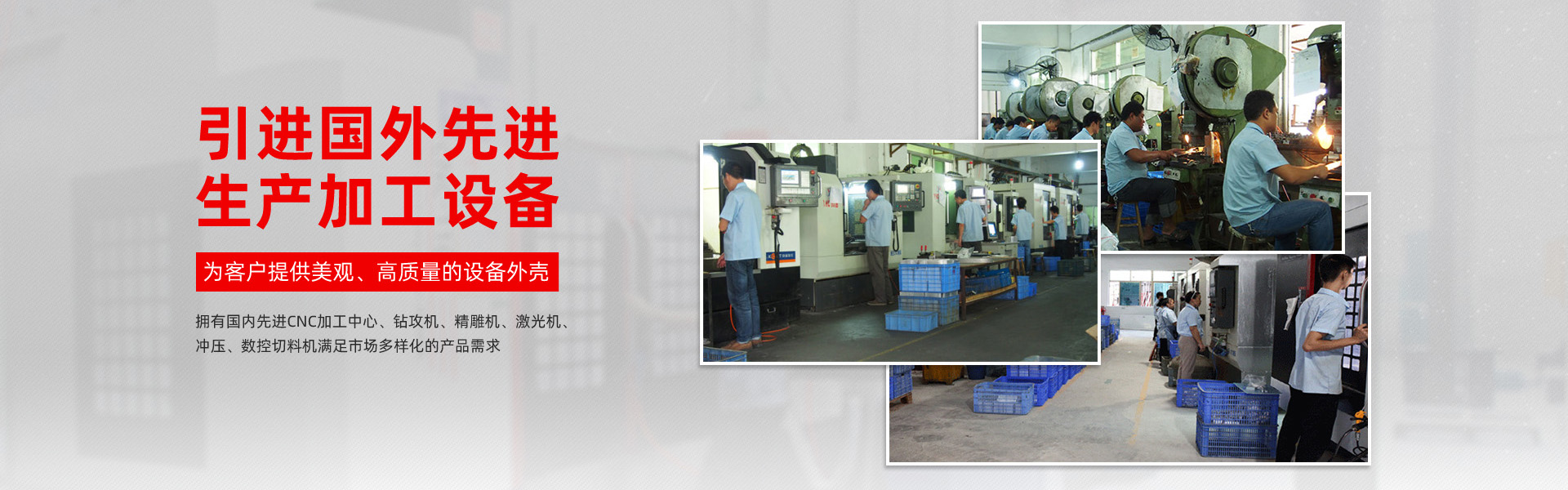 生产设备采用国内CNC加工中心,钻攻机,精雕机,激光机,满足市场多样化的产品需求!